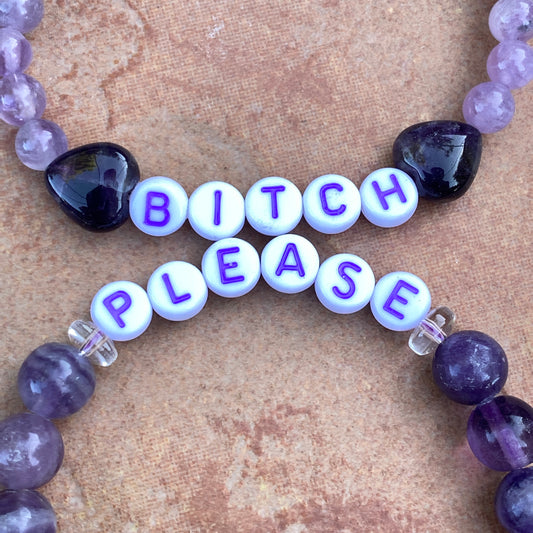 Women’s “bitch please” purple gemstone curse stretch bracelet set