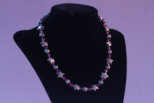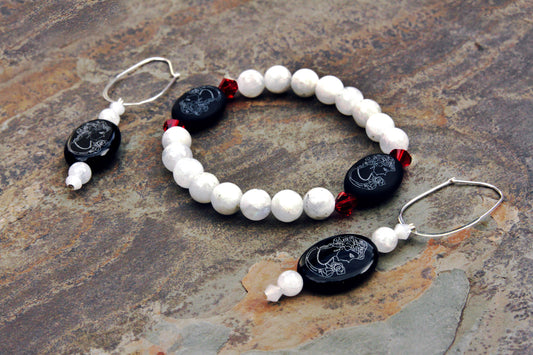 Women's Red Skulls & Hematite Gemstone Necklace wtih Sterling Silver