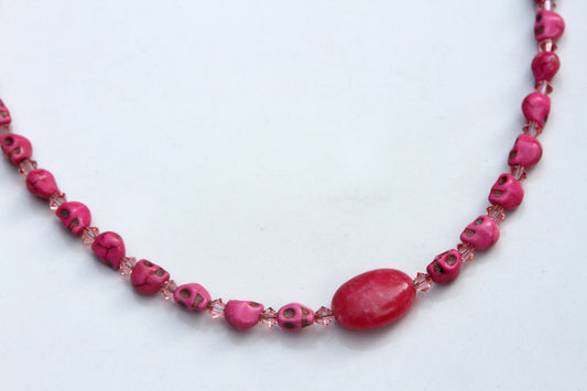 Women's Pink Magnesite Skulls with Pink Jade Gemstone Necklace