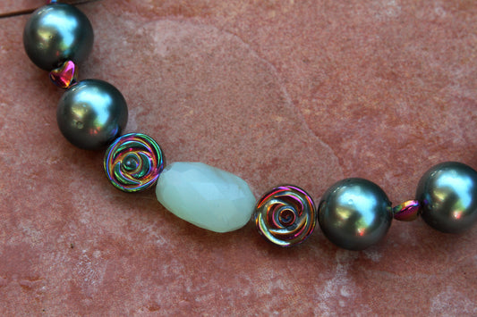 Women's Chalcedony gemstone & Mother of Pearl Necklace
