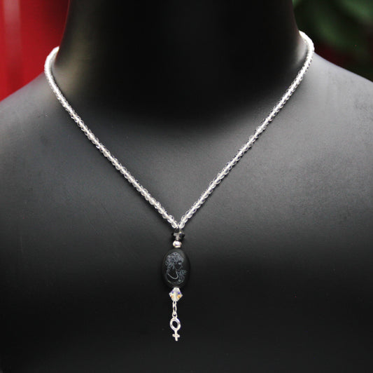 Women's Small Onyx gemstone Cameo and Sterling Silver Venus Charm
