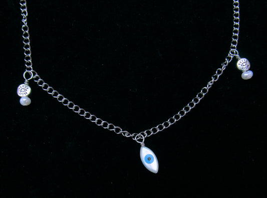 Pearl beaded necklace with silver plated Horseshoe pendant