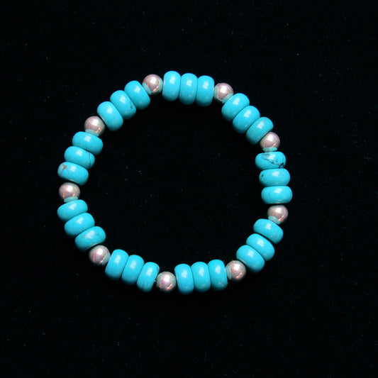 Genuine Turquoise and Sterling Silver Beaded Stretch Bracelet