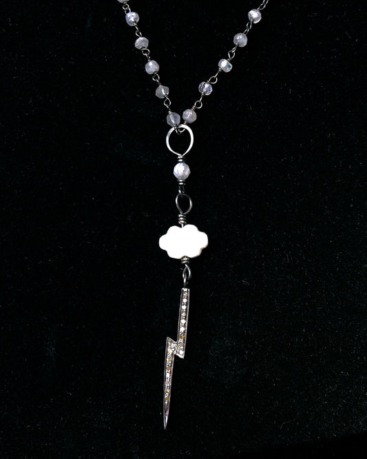White Topaz Bolt and Moonstone gemstone Cloud Necklace
