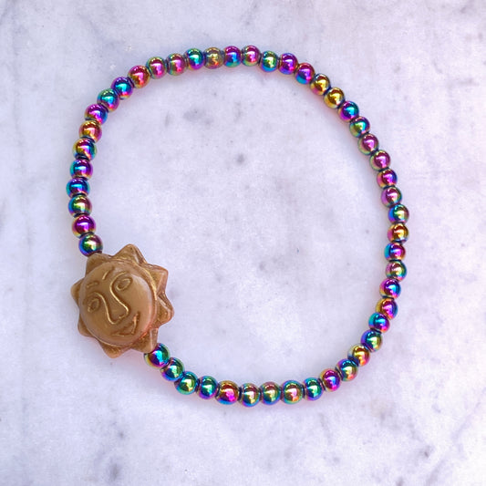 Rainbow Fluorite gemstone Beaded Flower Necklace