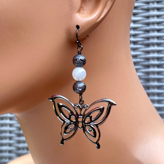 Druzy Agate gemstone and Leopard Beaded Stretch Bracelet