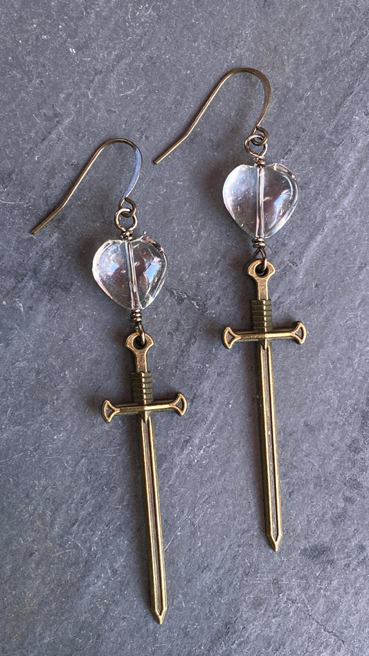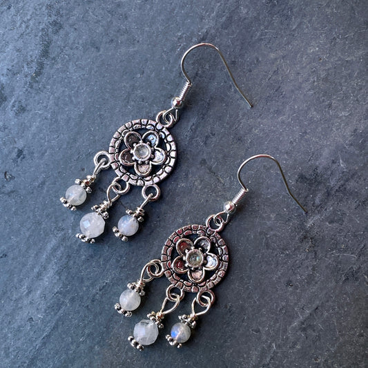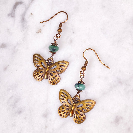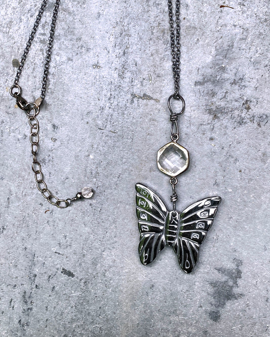 Hematite Butterfly and Quartz gemstone on sterling silver chain necklace