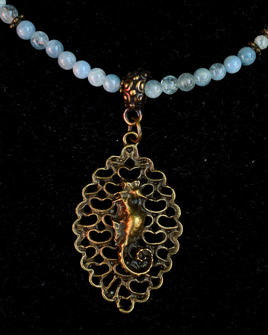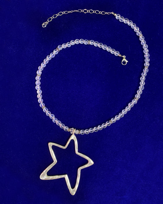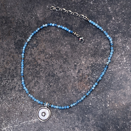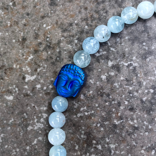 Selenite and Tibetan Agate Gemstone stretch bracelet