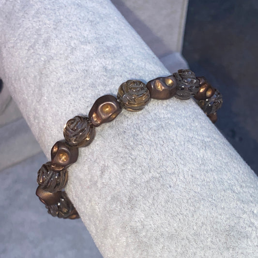 Hematite Skull and Smokey Quartz Rose Bracelet
