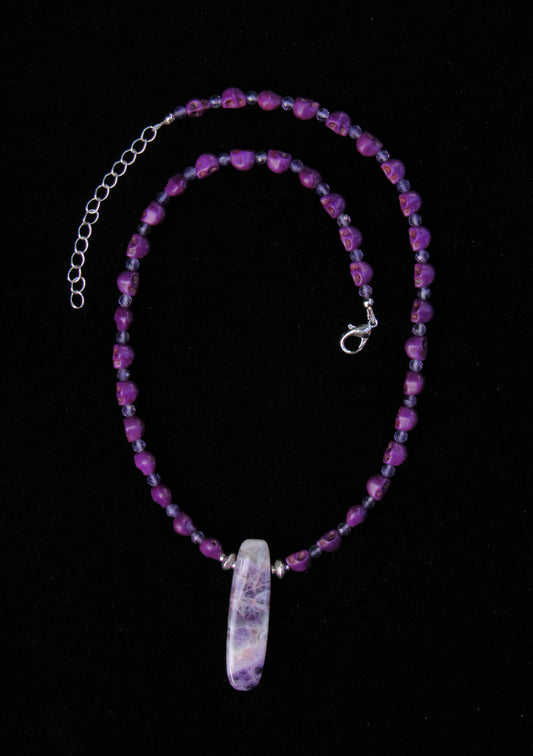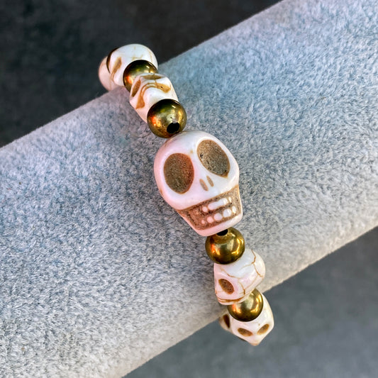 Gemstone with Metal Sugar Skull dangle and drop Earrings