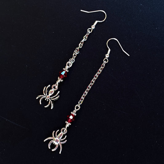 Halloween Spider and Swarovski Crystal Dangle Earrings