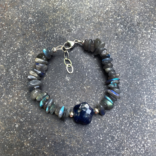 Lapis Lazuli gemsotne pendant Necklace on steel chain.