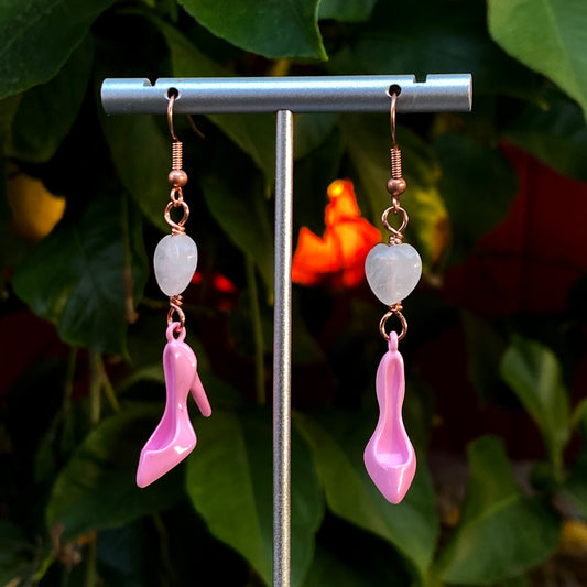 Pink Shoe and Rose Quartz Earrings