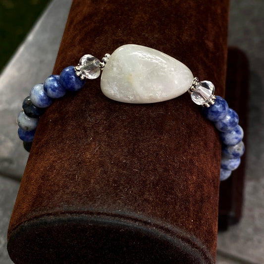 Sodalite, White Moonstone, Quartz, and Sterling Silver Bracelet