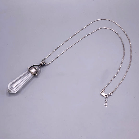 Clear Quartz Point Pendant on Vintage Renewed Chain