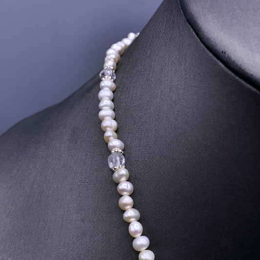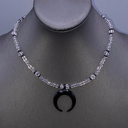 Clear Quartz and Herkimer Diamond Moon Necklace