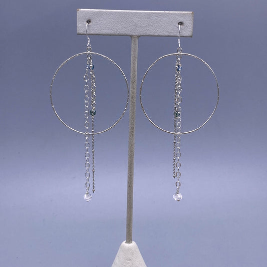 Silver Hoop Dangle Crystal Gemstone Earrings
