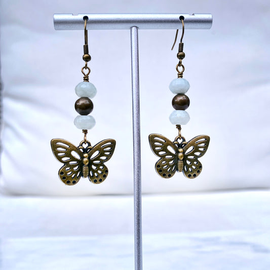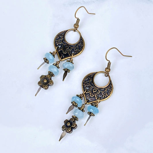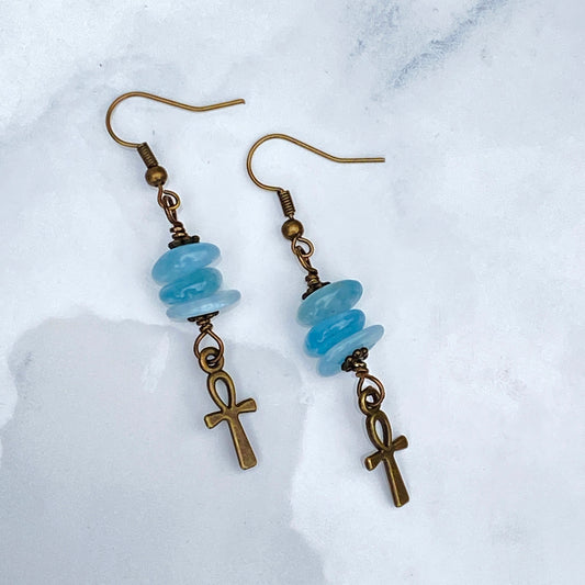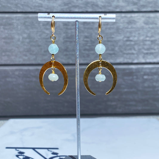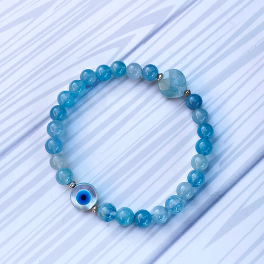 Aquamarine with Mother of Pearl Evil Eye stretch Bracelet