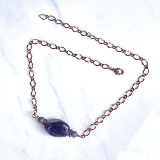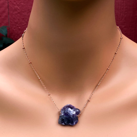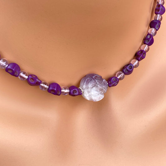 Amethyst gemstone and Howlite Skull and Rose Necklace
