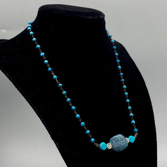 Turquoise gemstones and silver Flower Sterling Silver Necklace