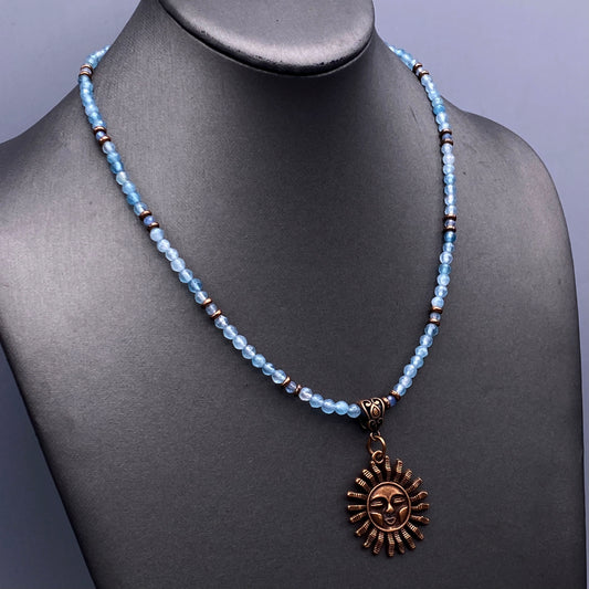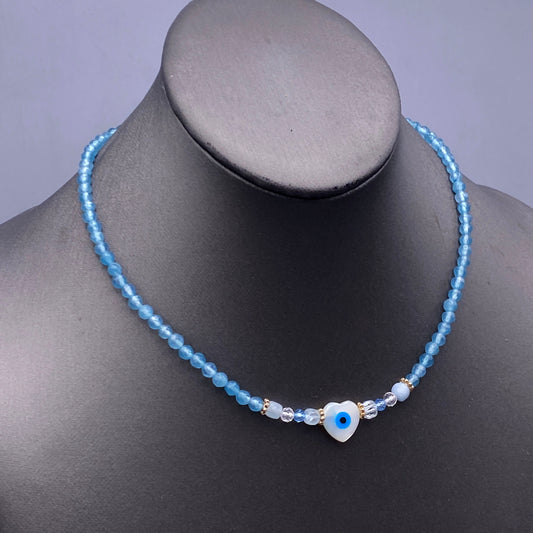 Aquamarine, Blue Topaz, and Evil Eye Necklace