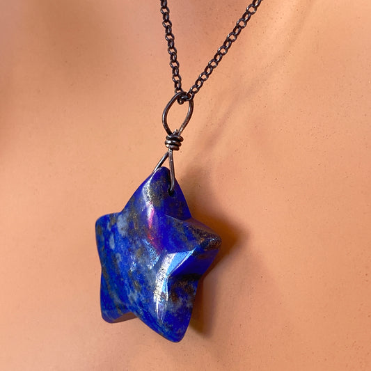 Lapis Lazuli Star on Oxidized Sterling Silver Chain