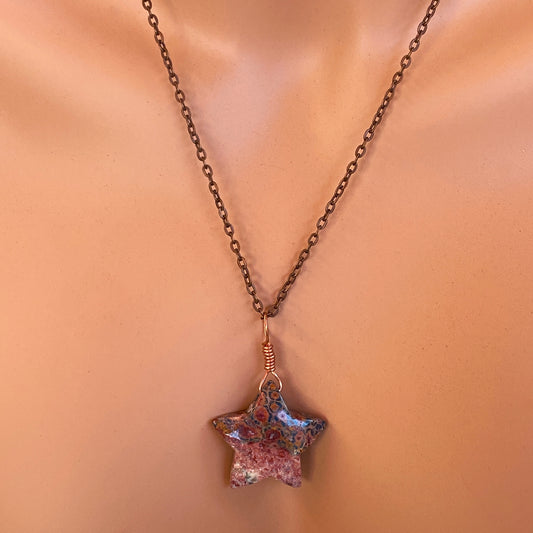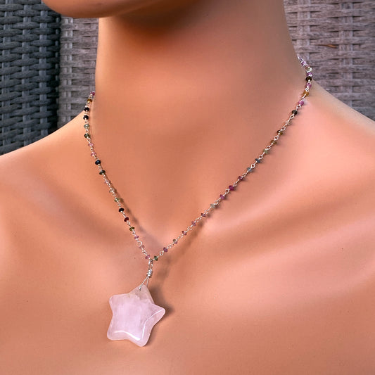 Rose Quartz Star on Mixed Tourmaline and Sterling Silver