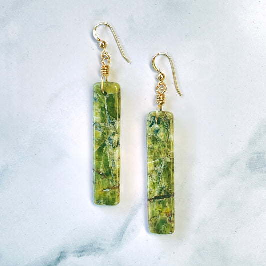 Pink agate gemstone wrapped copper Moon dangle earrings