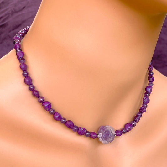 Rose Quartz gemstone and copper Sun pendant beaded necklace