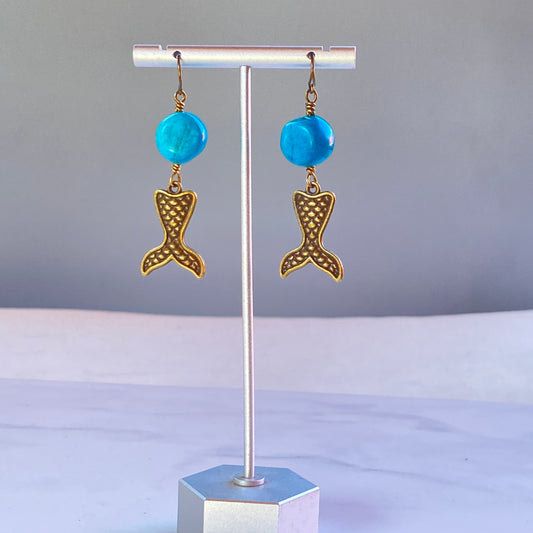 Mermaid and Turquoise gemstone Dangle Drop Mermaid Tail Earrings