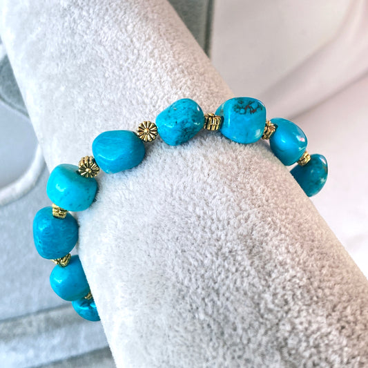 Turquoise gemstone and Brass Flower Beaded Bracelet