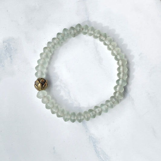 Matte Quartz gemstone and Brass Lotus stretch Bracelet