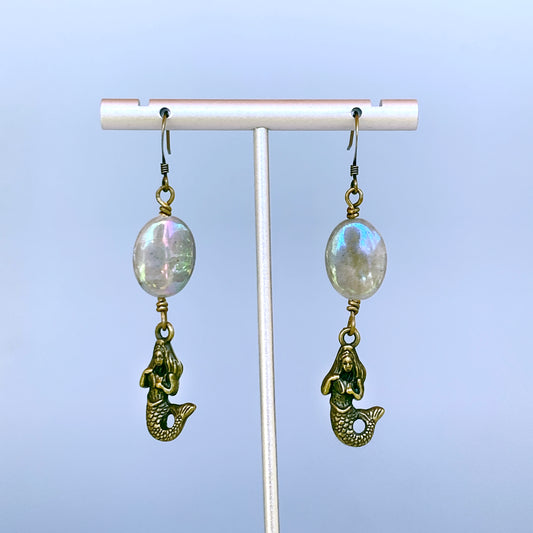 Mermaid and Aura coated labradorite gemstone dangle earrings