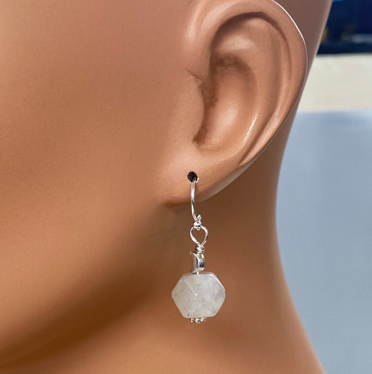 Labradorite gemstones with silver Moon Dangle earrings