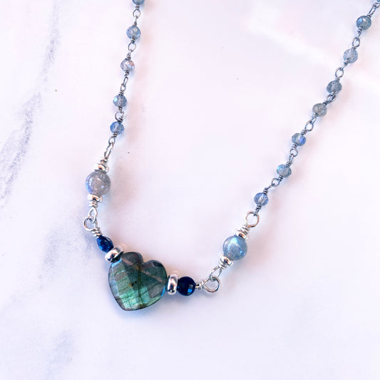Labradorite, Blue Sapphires gemstones, and Sterling Silver necklace