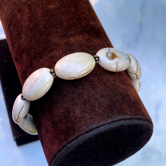 White turquoise gemstone and Brass Bracelet