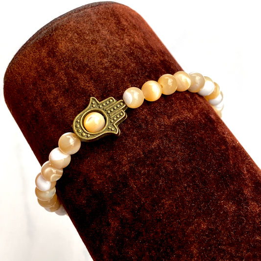Hamsa with Mother of Pearl beaded stretch bracelet