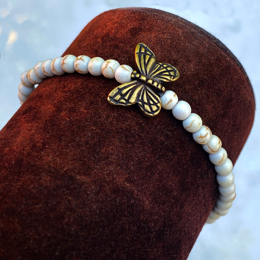 White turquoise gemstone and Brass Butterfly Bracelet