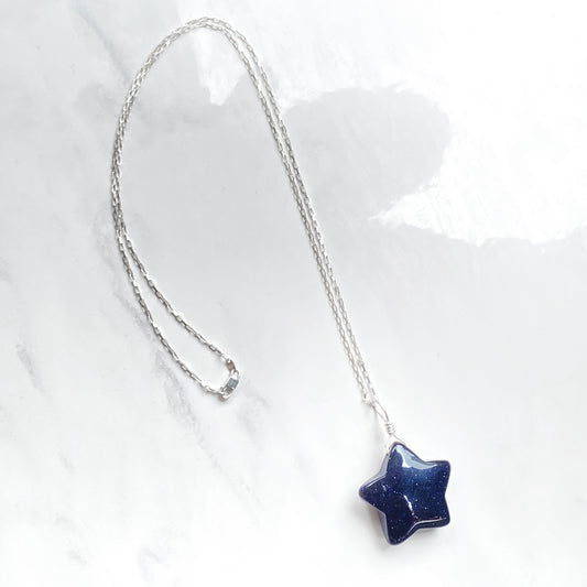 Blue Goldstone gemstone Star Necklace