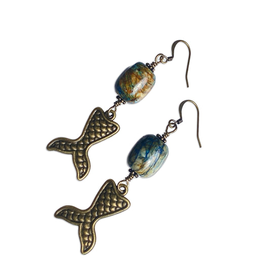 Mermaid and Chrysocolla Dangle Drop Mermaid Tail Earrings