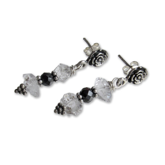 Black Diamond, Herkimer Diamond, and Sterling Silver Stud Earrings