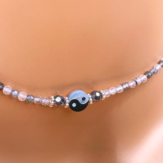 Yin Yang, Black Diamonds, tourmaline Quartz, and Sterling Silver Choker