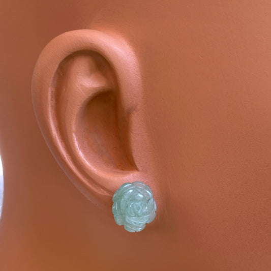 Carved Green Aventurine gemstone Stud Earrings