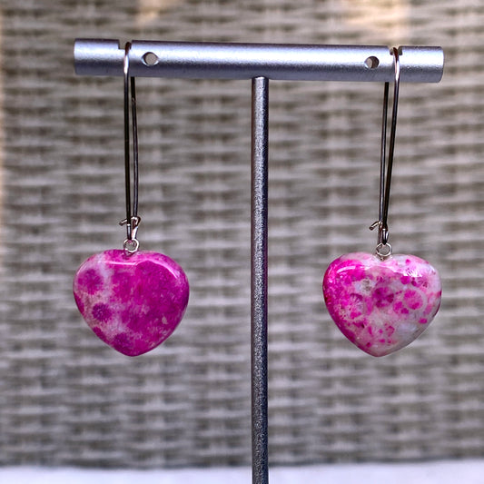 Pink Coral Fossil and sterling silver dangle drop earrings