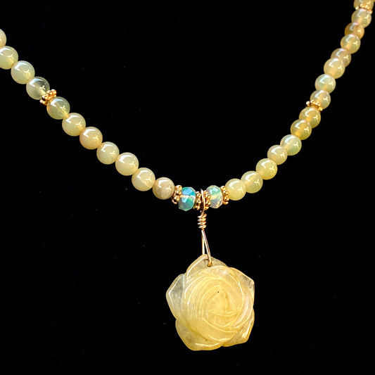 Yellow Opals, Ethiopian Opals, Yellow Aventurine gemstone Flower Necklace