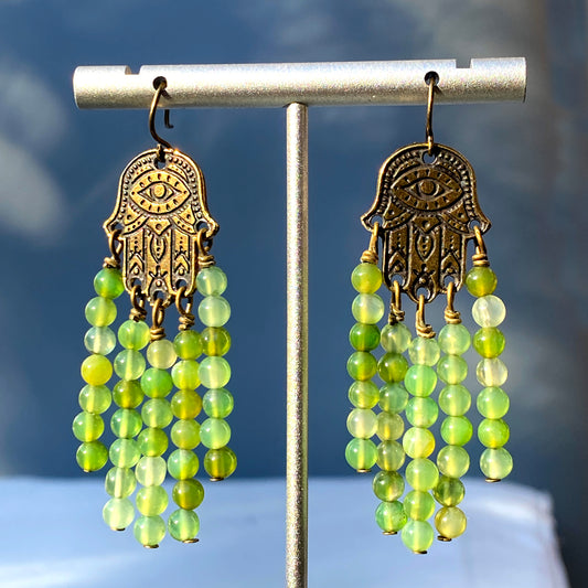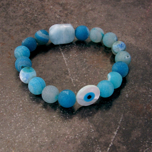 Blue Agates, Aquamarine gemstone, and mother of Pearl Evil Eye Bracelet