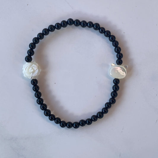 Natural onyx bead Kitty Cat Stretch Bracelet