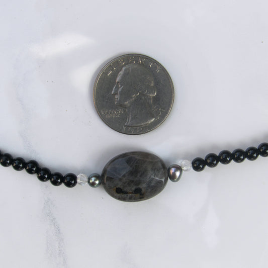 Labradorite, Clear Quartz, Onyx gemstone, Freshwater Pearl, Sterling Silver Choker Necklace