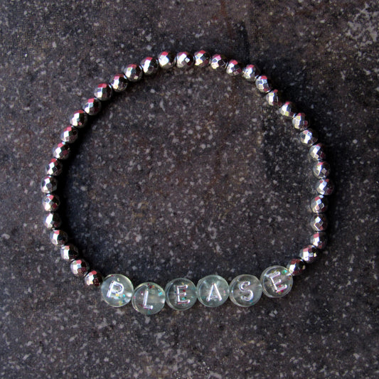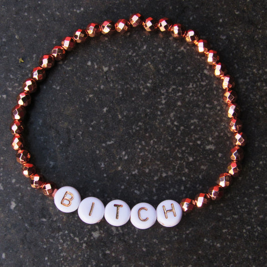 Hematite Gemstone "BITCH PLEASE" women's Stretch Bracelet