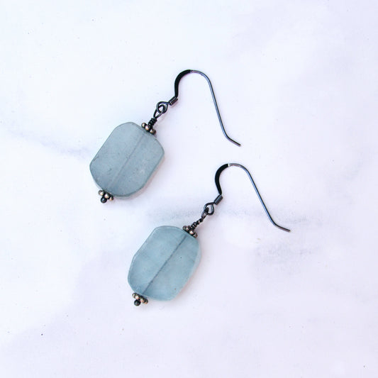 Aquamarine gemstone and Oxidized Sterling Silver Drop Earrings